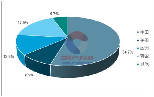2017年全球多晶硅产量约为43.2万吨,同比增长13.7%;其中,中国占比56%,连续第2年占比过半,排名世界第一;韩国产量为7.7万吨,同比增加4.1%,排名第二;德国产量5.8万吨,同比减少7.9%,排名第三。