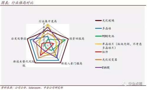 通过行业历史回顾可以看到,每一轮周期中均有细分行业通过快速降本或技术进步,获得超额回报,成为市场宠儿。但先发优势无法保持的特性也使得超额回报无法长存。子板块中光伏玻璃、EVA膜和逆变器由于技术路线稳定,行业格局集中,虽然无法获得技术革新的超额回报,但价格压力较小,仍可受益于需求增长,穿越周期带来确定回报。