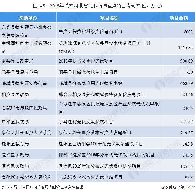 近年来,河北省依据国家光伏发电政策导向,并结合本省光伏发电发展现状,稳步推进各地光伏发电项目,具体项目如下表所示: