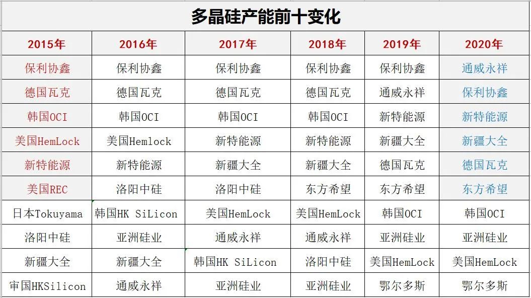 其二,新进造硅势力,从规划到形成产能的时间周期会远远超过预算,从环评、能评,到招标建设、产能爬坡,没有两年是下不了地的,中间还存在政策、市场等各种变数。同时硅料竞争的重点以后越来越体现在先进产能的竞争上(重点是降成本),这些需要时间、技术、人才的漫长积累,从这点上看,我不认为新进入硅料市场的玩家会比现在几个寡头做的好。阳光这类玩家,就算曾经也是多晶硅巨头,但别忘了,当年它就是失败者,我更不认为它们在不占据资金和技术优势的今天能脱颖而出。
