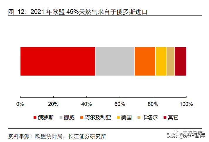 相比于其它市场,欧洲能源安全问题更加突出,进一步增强新能源的发展意愿。欧洲能源对外依赖度很高,天然气电力为其重要电力来源之一,占比超 20%,而天然气八成以 上依赖进口,其中四成左右依赖于俄罗斯。政治因素下,俄罗斯近年对欧盟出口天然气 逐年减少,致使能源安全问题逐渐凸显。