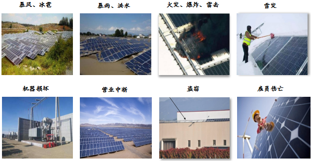 依据行业报告统计,光伏电站的运营周期在25-30年间,常见风险因素主要集中在暴风冰雹洪水等恶劣天气造成的财产损失风险、因组件产品质量及设计缺陷等造成的技术损失风险,其次是运输、安装过程中遭遇的财产损失风险,再次是运营期内雇员伤亡等造成的安全事故损失风险。